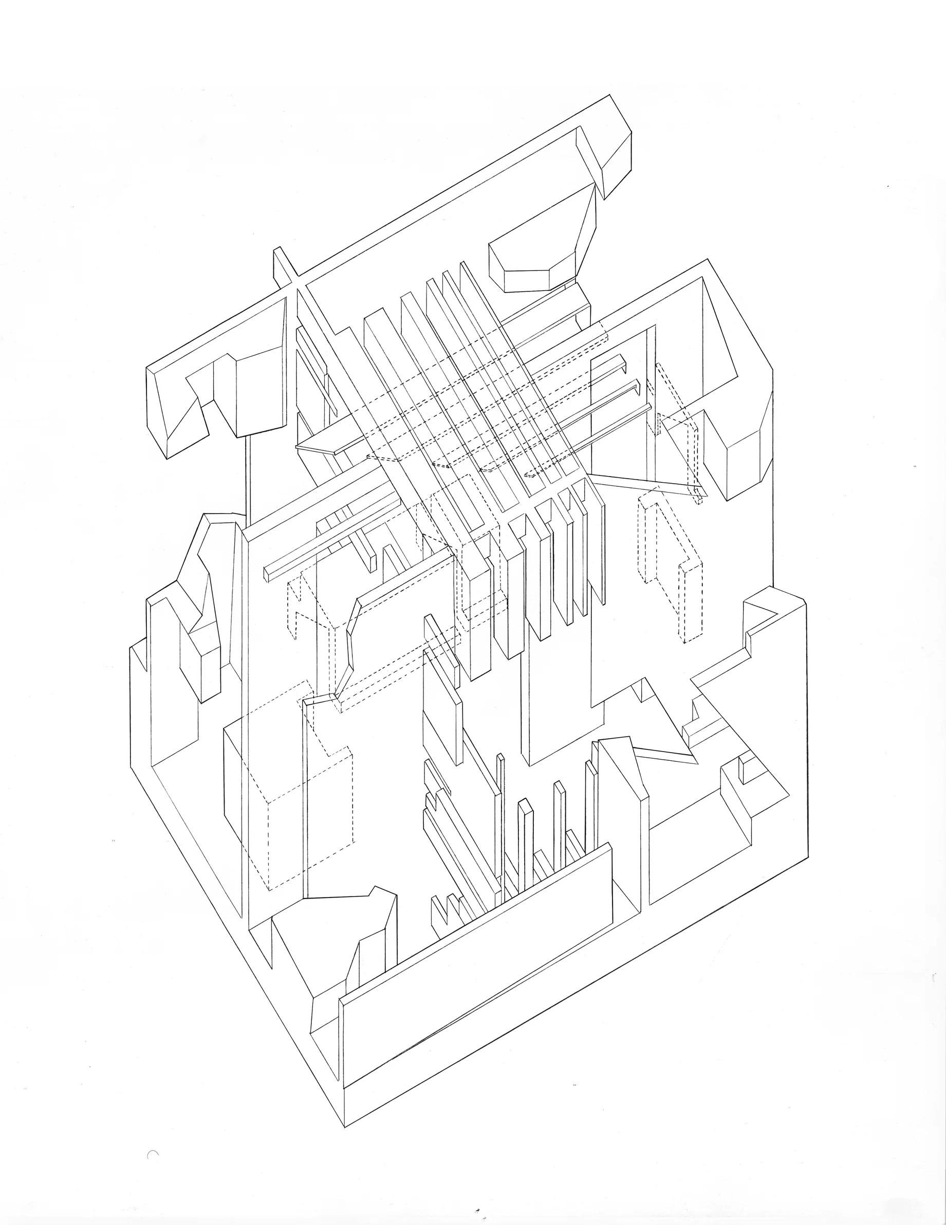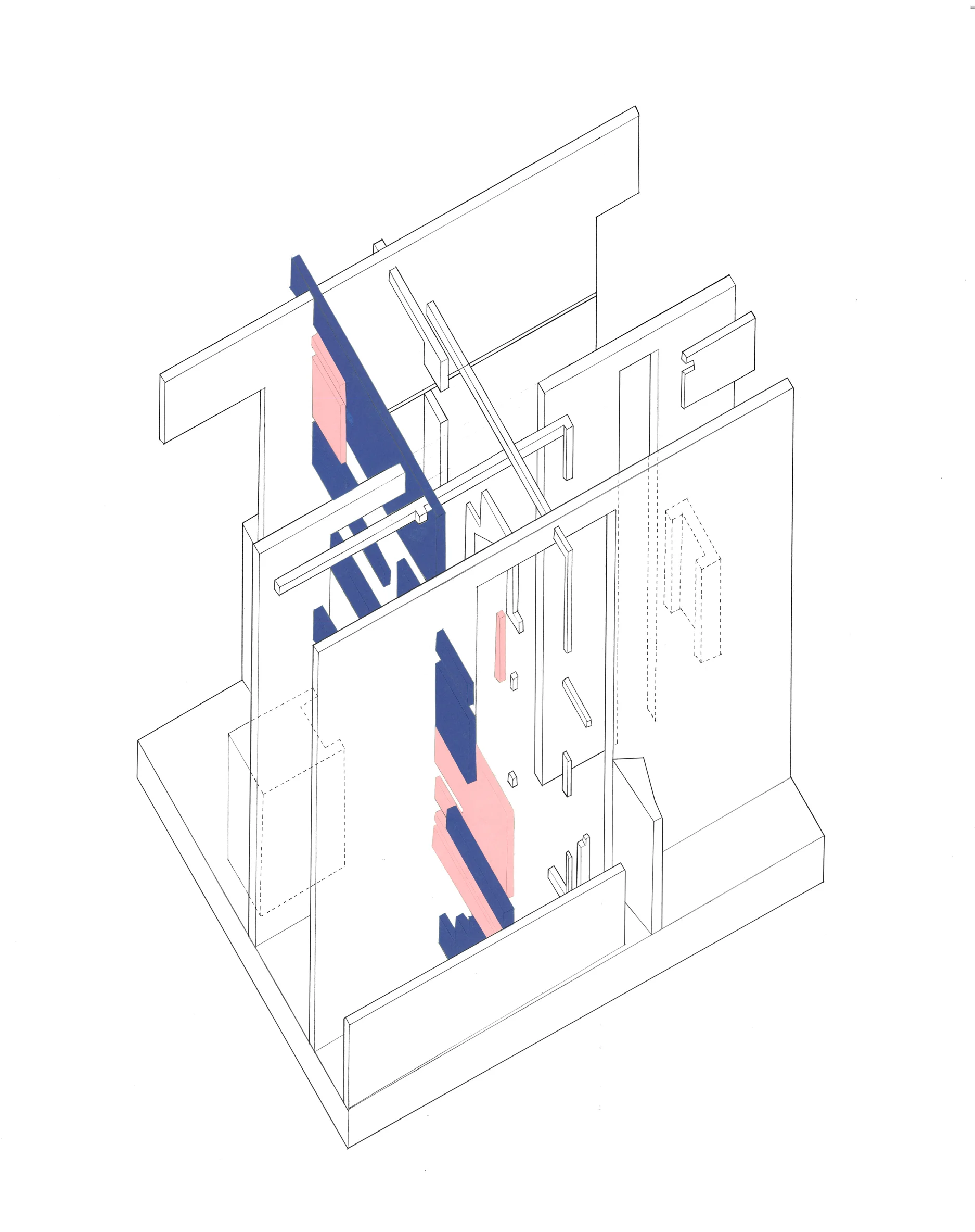19"x24"; Pencil and Colored Paper; Second Iteration of Axonometric Drawing