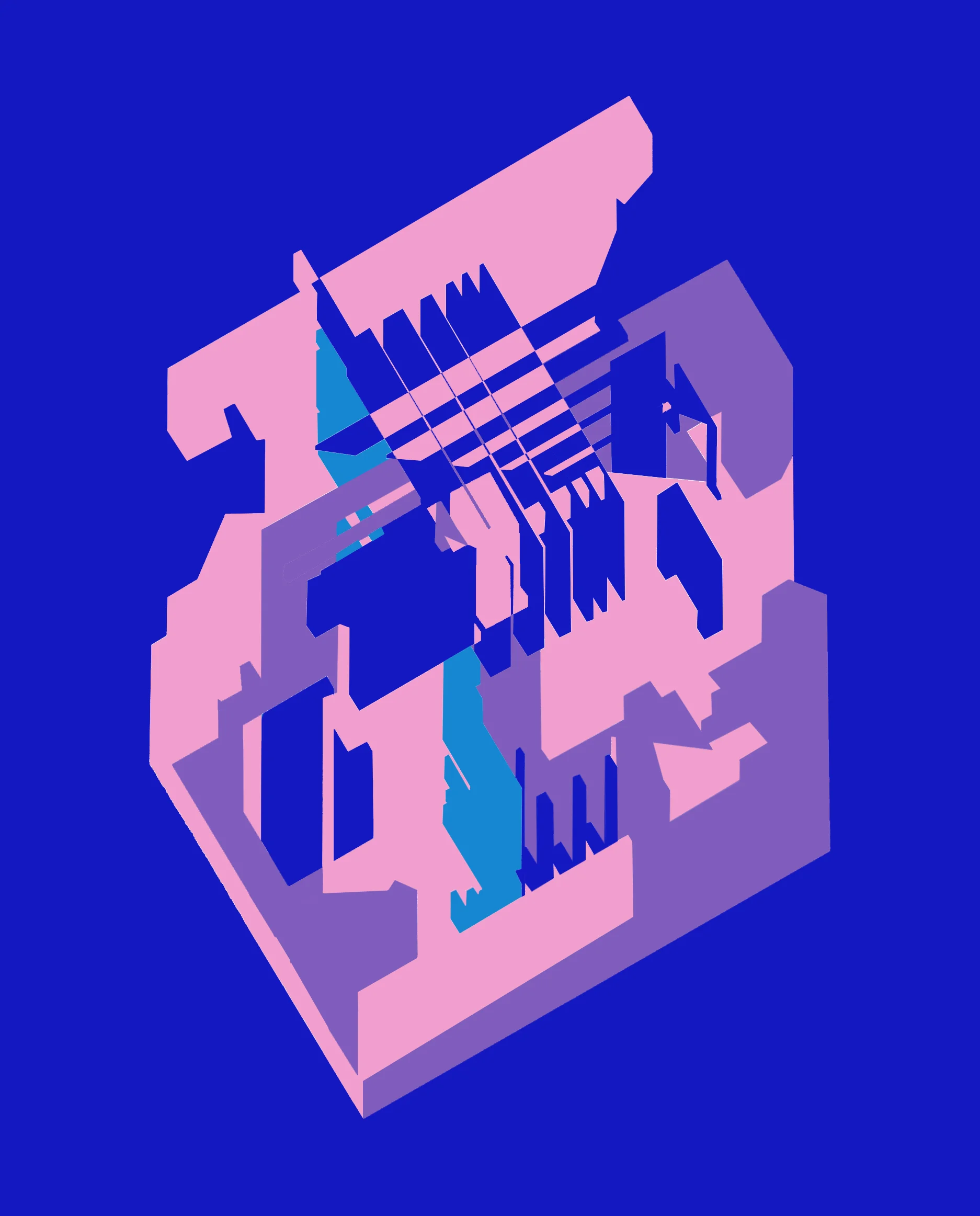 19"x24"; Digital; Third iteration of axon (I wanted to now move away from conventions in visual representation and create a drawing that was similar to the original painting in its use of color and phenomenal transparency)